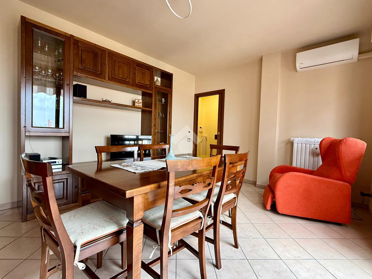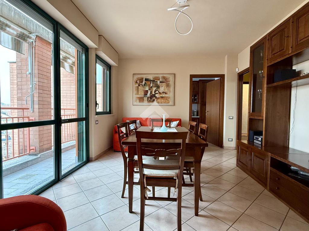 Corso Felice Cavallotti, nel centro di Asti, appartamento al settimo ed ultimo piano di un edificio moderno con ascensore. L'immobile offre un'ampia zona giorno composta da una cucina abitabile e un ampio soggiorno, entrambi con accesso diretto a un spazioso terrazzo vivibile che regala una vista panoramica sulla città di Asti. La proprietà include due camere da letto, ideali per una famiglia o per chi desidera uno spazio aggiuntivo per ospiti o studio. Sono presenti due bagni, uno con vasca e l'altro con doccia, garantendo comfort e praticità. L'appartamento gode anche di due balconi completi di zanzariere, tapparelle elettriche e vetrate VEPA. L'immobile è dotato di riscaldamento autonomo e aria condizionata, assicurando un clima ideale in ogni la proprietà un box auto, con richiesta a parte, e una comoda cantina per ulteriore spazio di archiviazione.